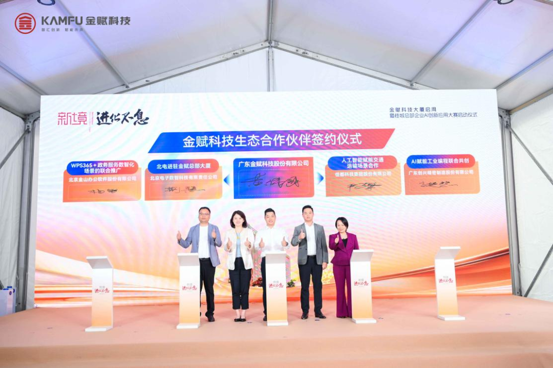 2025年10月28日,协会常务副会长单位广东金赋科技股份有限公司以“新境・进化不息”为核,在全新落成的金赋科技大厦,同步举行大厦启用仪式与桂城总部企业AI创新应用大赛启动仪式。作为国家级专精特新“小巨人”、映月湖片区首批摘牌的企业总部,此次盛典不仅是金赋科技“空间焕新、战略升级、精神焕活”的进化节点,更以建筑为基、以生态为脉,开启企业深耕科技、赋能产业的全新发展境域。四载精工筑地标,科技赋能新空间金赋科技总部项目总投资超亿元,自2021年9月奠基以来,历经四年精工雕琢终成正果。大厦占地6189平方米,建筑面积近3万平方米,集研发、办公、展厅、孵化与商业配套于一体,成为功能完善、布局科学的综合性产业载体。外立面玻璃幕墙与云天相映,尽显现代科技质感;内部空间深度融合智能、人文与生态理念,为员工打造舒适高效的工作环境,更为技术研发与产业合作提供了广阔平台。这座崛起于桂城的产业新地标,不仅是金赋科技研发运营的核心基地,更将成为佛山产业智能化转型的重要支撑。金赋科技大厦金赋科技焕新装南海区委书记顾耀辉、南海区桂城街道党工委书记余辉在金赋科技董事长任泳谊的陪同下参观金赋科技展厅 廿三深耕铸根基,乔迁焕启新愿景“23年前选择佛山、扎根桂城,是金赋最正确的决定,信心胜金的信念始终指引我们前行。”金赋科技董事长任泳谊在乔迁盛典上深情回顾公司发展历程。二十三年砥砺奋进,金赋科技从本土培育的“隐形冠军”成长为AI产业先行者,此次乔迁正是金赋科技发展实力的见证与战略升级的起点。 金赋科技董事长任泳谊致辞任董表示,建有形的大厦不易,建心中的大厦则更难。未来,金赋人将在这座有形的大厦中,守护心中的创新大厦,以“创新是金”的信念,在AI研用赛道上勇攀高峰,创造更多行业标杆成果,与实体经济和创新伙伴共炼创新真金。政企同心强赋能,生态共融谱新篇桂城总部企业AI创新应用大赛启动仪式上,政企联动与生态共融成为一大亮点。南海区委书记顾耀辉表示,这既是金赋科技跨越发展的关键一步,也是南海人工智能产业聚势崛起、总部经济能级加速跃升的生动写照。佛山市南海区桂城街道党工委书记余辉寄语金赋科技,以总部启用为新起点持续引领创新,街道将始终做好“店小二”,提供全方位支持保障。南海区人民政府副区长劳剑锋现场解读《南海区十大生产性服务业工作方案》,为企业发展注入强劲政策动力。南海区委书记顾耀辉致辞南海区桂城街道党工委书记余辉致辞金赋科技与生态合作伙伴进行签约仪式华为政企数智化体验中心落地金赋科技大厦以厦为基启新程,智领未来向星辰新厦如舟,智作帆;初心如磐,向未来。乔迁后的金赋科技,将以这座现代化大厦为坚实根基,承载创新灵感、培育技术突破、见证产业跃升。同步启动的桂城总部企业AI创新应用大赛,更将为桂城总部经济注入新动能,加速构建 “进化不息”的科技新生态。午宴共叙情谊,同心展望未来感恩同行,共赴新程。活动结束后金赋科技特设乔迁午宴,邀请生态合作伙伴,以及长期支持公司发展的客户代表、嘉宾齐聚一堂。杯盏之间,不仅传递着乔迁的喜悦,更凝聚了同心同行、共赋新篇的共识。金赋科技乔迁午宴祝酒仪式未来,金赋科技将继续以技术为楫、以服务为帆,扎根桂城这片创新沃土,在数字中国建设的浪潮中勇立潮头,为岭南数智产业发展书写更加辉煌的篇章!下面请欣赏部分活动精彩花絮:(转载于金赋科技)