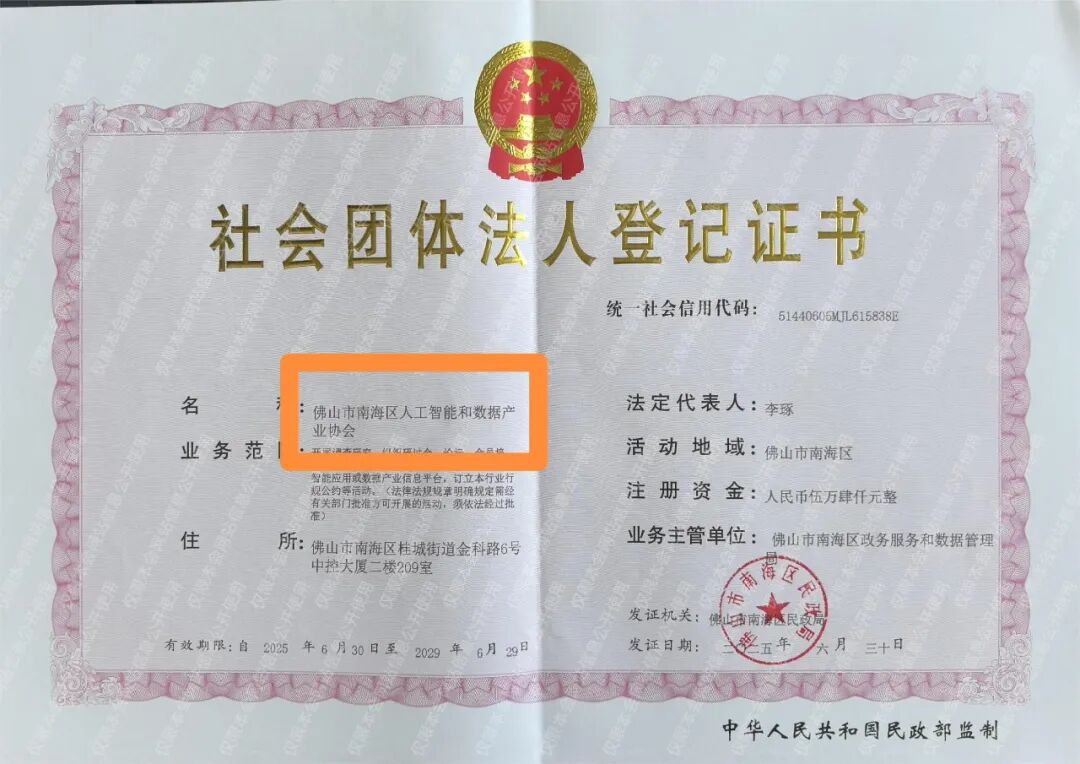 经协会会员大会全票审议通过,并获佛山市南海区民政局正式批准,原"佛山市南海区大数据产业协会"正式更名为"佛山市南海区人工智能和数据产业协会"。此次更名是协会顺应技术发展趋势、服务产业升级的重要举措。新名称突显了人工智能技术的核心地位,同时强化数据作为关键生产要素的战略价值,旨在构建"AI+数据"双轮驱动的产业生态。此次变更得到南海区政务和数据局的高度认可。未来,协会通过政策解读、技术培训、人才服务、资源对接等多种不同类型活动,助力会员单位抢占人工智能与数据产业新赛道,为南海建设粤港澳大湾区人工智能和数据产业高地注入新动能。协会公众号、小程序、官网的变更以及揭牌仪式在陆续进行,敬请继续关注与支持!